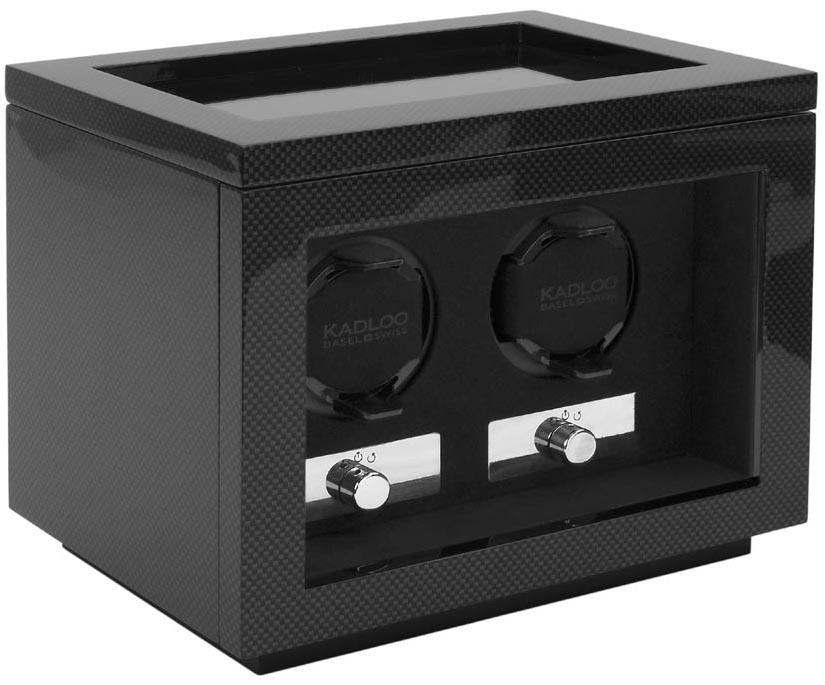 Часовая шкатулка Kadloo Cube 2 Carbon для двух механических часов. Независимые моторы, отделка карбон. Работа от сети.