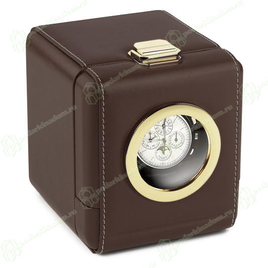 Дорожная шкатулка для механических часов (темно-коричневая кожа, окошко белый металл)