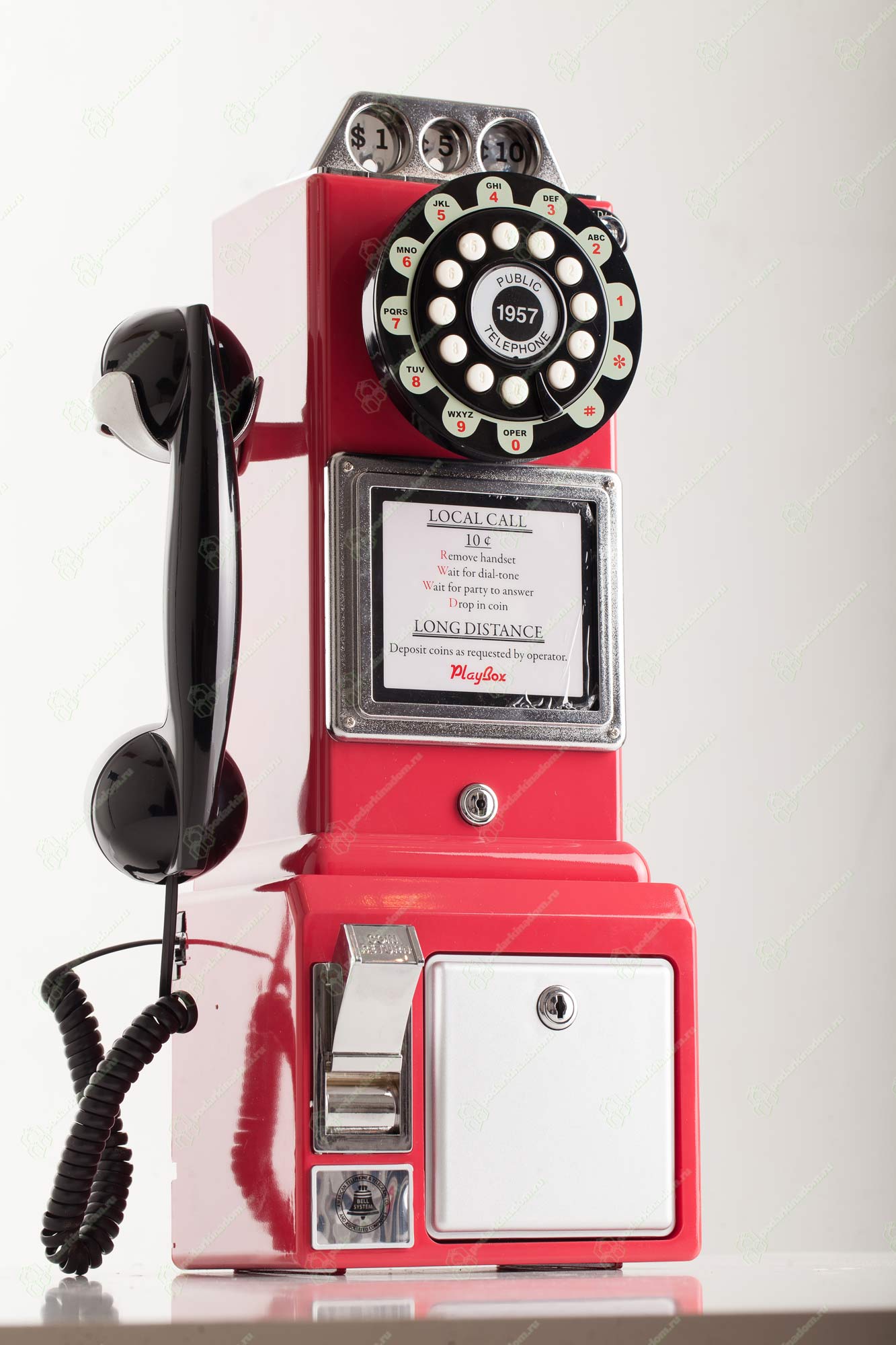 Ретро телефон в стиле 50-х годов с современным набором функций. Такие телефоны устанавливали в таксофонных будках США в середине прошлого столетия.