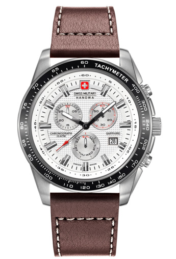 Швейцарские мужские часы с ярко выраженным спортивным динамичным дизайном. Корпус из нержавеющей стали имеет эргономичные очертания. Неподвижный безель с нанесенной тахометрической шкалой. Сапфировое стекло. Кварцевый механизм с функцией хронографа.